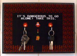 This keychain holder is perfect for Zelda fans and lovers. Made from birch wood and two hooks to hang your keys. Very easy to hang on the wall with two screws.